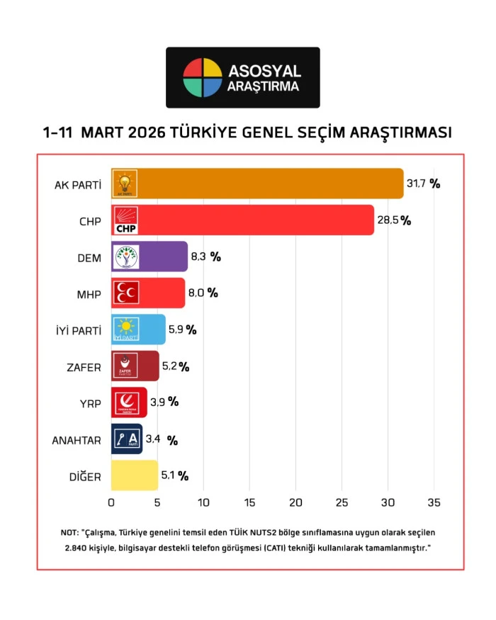 A sosyal Araştırma Genel Müdürü Enver Everdi, 1-11 Mart tarihleri arasında 2 bin 840 katılımcıyla Türkiye genelinde CATI yöntemiyle gerçekleştirilen araştırmanın sonuçlarını değerlendirdi.