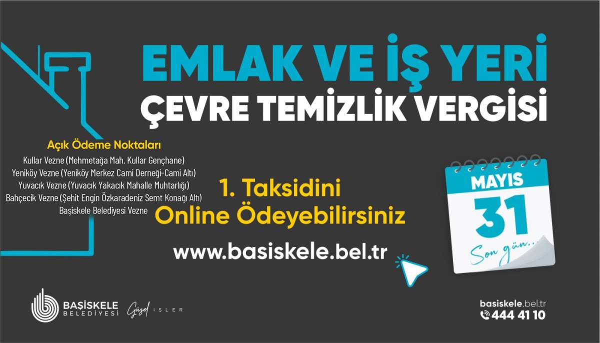 Her yılın Mayıs ve Kasım aylarında iki taksit halinde ödenmesi gereken Emlak, Çevre ve Temizlik, İlan ve Reklam Vergileri’nin ilk taksitleri ödenmeye başlandı. Başiskele Belediyesi tarafından yapılan duyuruda Başiskeleli vergi mükelleflerinin ödemelerinin gecikmemesi ve cezalı duruma düşmemeleri için 31 Mayıs 2024 Cuma günü mesai bitimine kadar ödemelerin yapılması gerektiğini bildirdi.