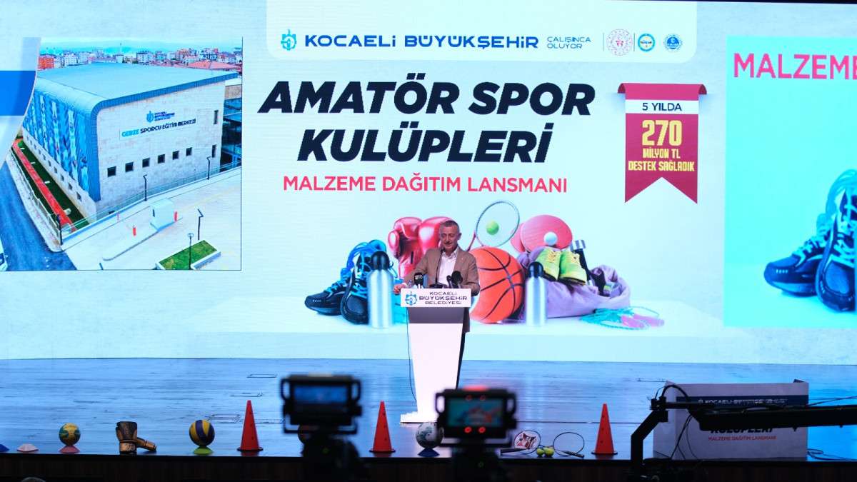 Bu kapsamda Kocaeli Kongre Merkezi’nde Malzeme Tanıtım Töreni düzenlendi. Törende konuşan Başkan Büyükakın, “2019-2024 yılları arasında amatör spora 270 milyon TL destek sağladık. Desteklerimizi artırarak sürdürecek, geleceğin şampiyonlarını Kocaeli’de yetiştirmeye devam edeceğiz” dedi.