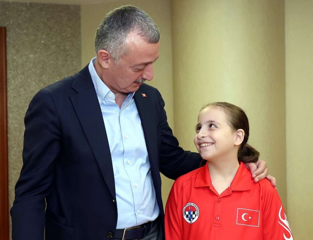 Başkan Büyükakın, Türkiye Satranç Şampiyonu Beren Çetin’i makamında konuk etti, Dünya Şampiyonası’nda başarılar diledi.