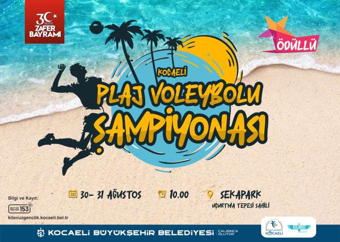 Gençlik ve Spor Hizmetleri Dairesi Başkanlığı tarafından 30-31 Ağustos tarihleri arasında Sekapark Uçurtma Tepesi Sahili’nde Plaj Voleybolu Şampiyonası organize edilecek. Başvurular https://kilavuzgenclik.kocaeli.bel.tr/PlajVoleybol.aspx internet adresi üzerinden online alınırken son başvuru tarihi 29 Ağustos Perşembe günü saat 12.30 olarak belirlendi. Şampiyonaya başvurular her bir kategoride 32 takım ile sınırlanırken takımların kadrosunda 2 oyuncu olma zorunluluğu bulunuyor. Plaj Voleybolu Şampiyonası’nda kadın ve erkek kategorilerinde mücadele ederek dereceye giren her bir takım için birinciye 6 bin TL, ikinciye 5 bin TL, üçüncüye ise 4 bin TL’lik spor hediye çeki verilecek.