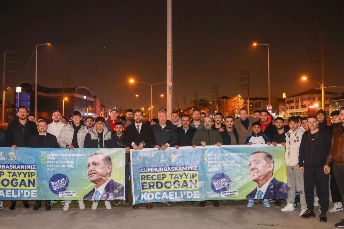 Talus, “Çayırova’dan Kartepe’ye, Karamürsel’den İzmit’e bütün ilçelerimizde gençlerimiz gece boyunca sahadaydı. Sahuru sokakta, vinç tepesinde karşıladı. Biz de ilçe ilçe gezip, gençlerimizin yanında olduk. Bütün hazırlıklarımız 28 Mart Perşembe günü Kocaeli Kongre Merkezi Miting Alanı’nda yapacağımız Büyük Kocaeli Mitingi için. Kocaeli Reisini çok özledi, Cumhurbaşkanımız Sayın Recep Tayyip Erdoğan’ı bekliyor” ifadelerini kullandı. AK Parti İl Gençlik Kolları Başkanı Çağatay Çağlayan da İl Başkanı Şahin Talus ile birlikte ilçe ilçe gezerek gençlerin yanında oldu. Çağlayan, gençlerin miting için hazır olduğunu söyledi.