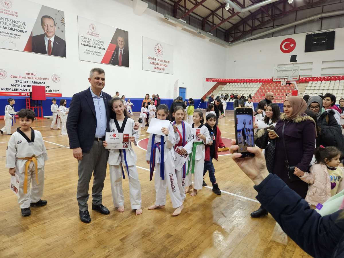 Gölcük Belediyespor bünyesindeki taekwando branşında bulunan 407 sporcu, düzenlenen törenle kuşak atladı.