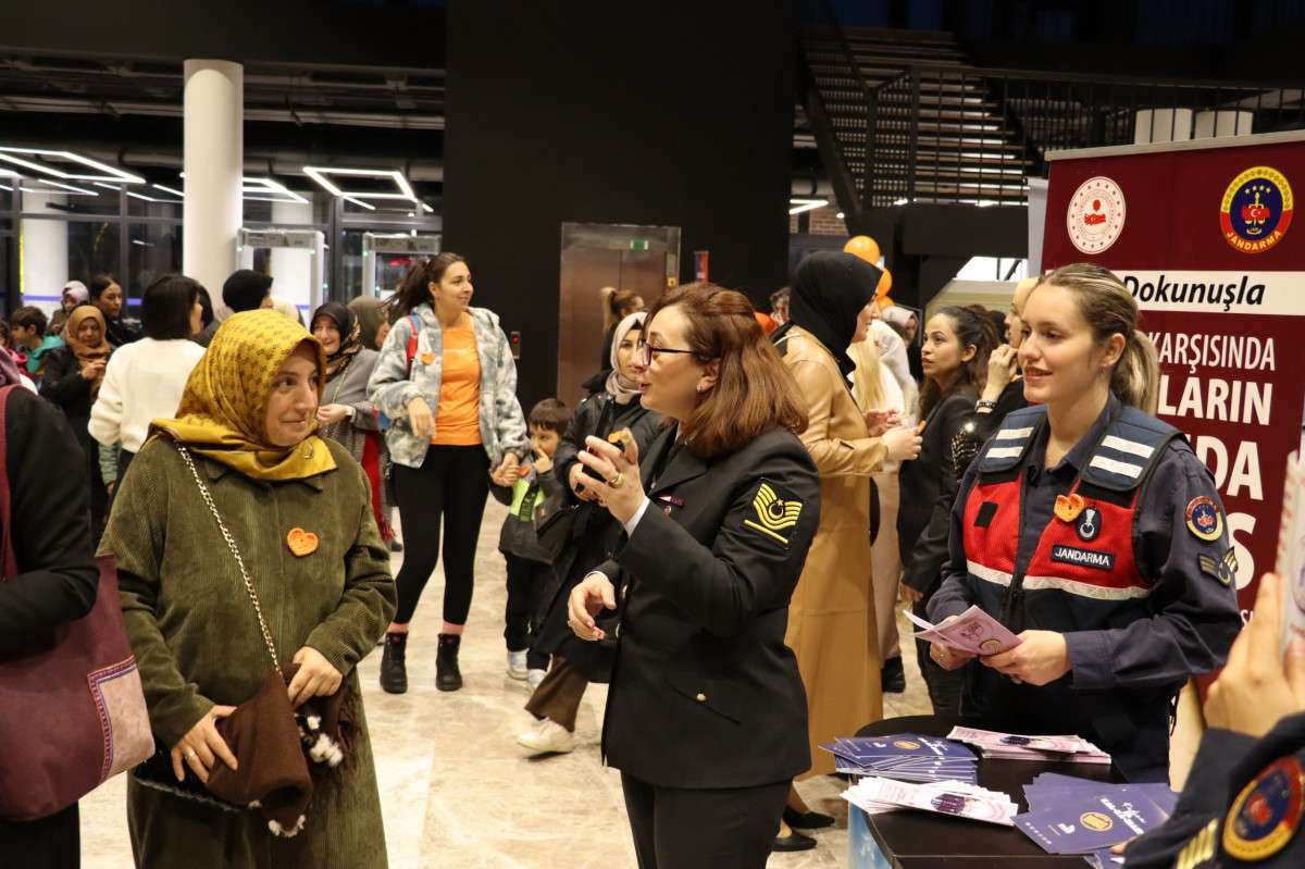 Kocaeli İl Jandarma Komutanlığı ekipleri, Kadına Yönelik Şiddete Karşı Uluslararası Mücadele Günü dolayısıyla kurulan stantlarda kadın haklarını anlattı ve KADES'i tanıttı.