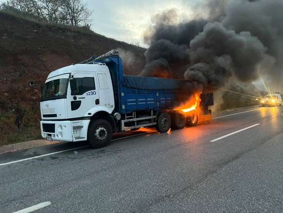 Olay, D-100 kara yolu Sakarya-Düzce sınırında meydana geldi. Edinilen bilgiye göre, Düzce'den Sakarya istikametine giden T.K. idaresindeki 38 GP 142 plakalı Ford marka kamyonun lastiklerinden alevlerin yükseldiğini fark eden sürücü, durumu itfaiye ekiplerine bildirdi. İhbar üzerine bölgeye gelen Gümüşova Belediyesi İtfaiye Müdürlüğü ekipleri, alev topuna dönen kamyondaki yangını kısa süre içerisinde söndürerek kontrol altına aldı. Yangın sebebiyle tek şeritten verilen trafik, söndürme çalışmalarının tamamlanmasının ardından normal seyrine döndü.