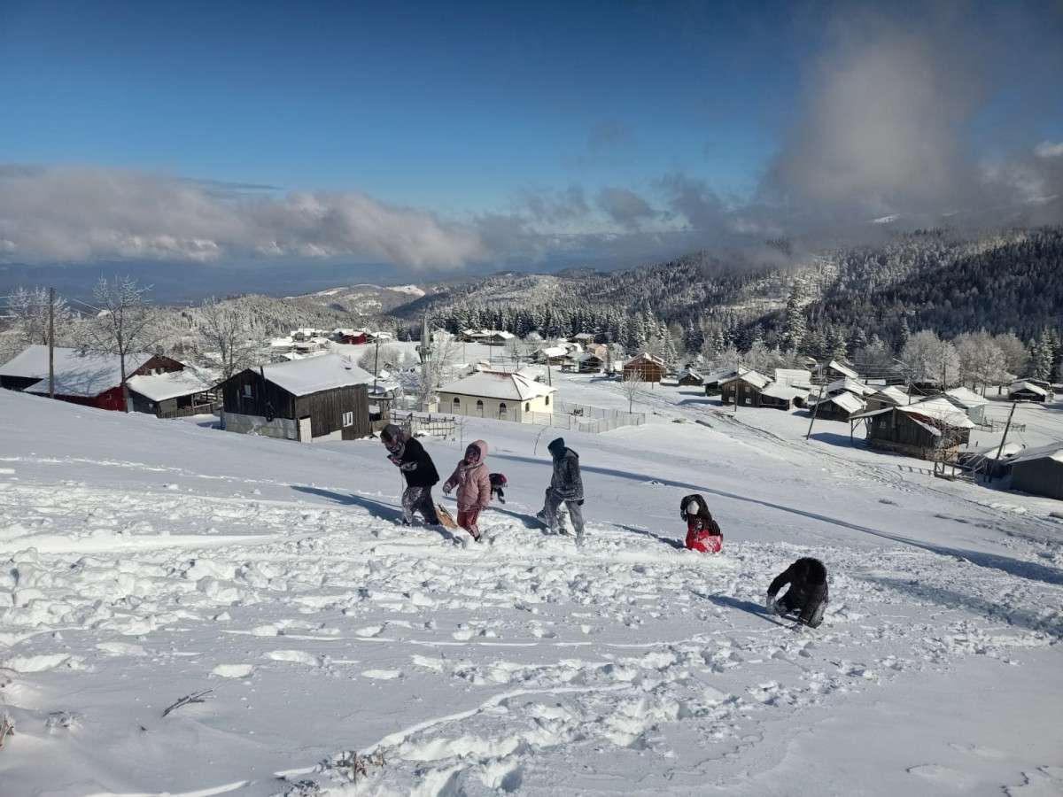 Sakarya'da bin 725 rakımlı Dikmen Yaylası'nda karın keyfini çıkaran çocuklar, kızaklarıyla kayarak gönüllerince eğlendi.
