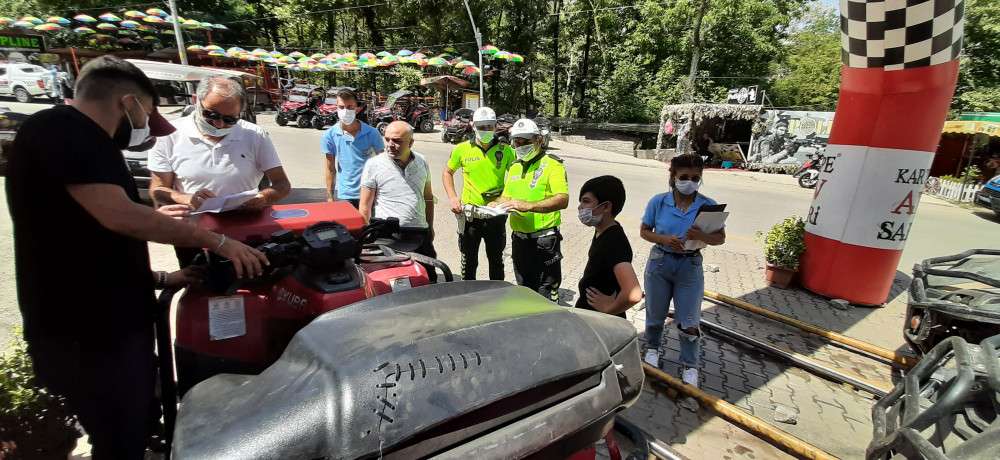 Bu kapsamda; İl Kültür ve Turizm Müdürü Fatih Taşdelen, İl Kültür Turizm Şube Müdürü Mahmut Yamaç, İlçe Emniyet Müdürü Oğuz Olgun, İlçe Jandarma Komutanı Jandarma Teğmen Özkan Bakır, İlçe Gençlik Hizmetleri Spor Müdürü Erol Arutan ile Motosiklet Federasyonu Kocaeli İl Temsilcisinden oluşan Denetim Komisyonu geçtiğimiz hafta sonu bölgede ATV ve UTV işletmeleri denetledi. Yetkililer, bu denetimlerin bölgeye gelen yerli ve yabancı turistlerin daha güvenilir bir ortamda sportif amaçlı turizm faaliyetlerini yapabilmeleri için devam edeceğini kaydetti.