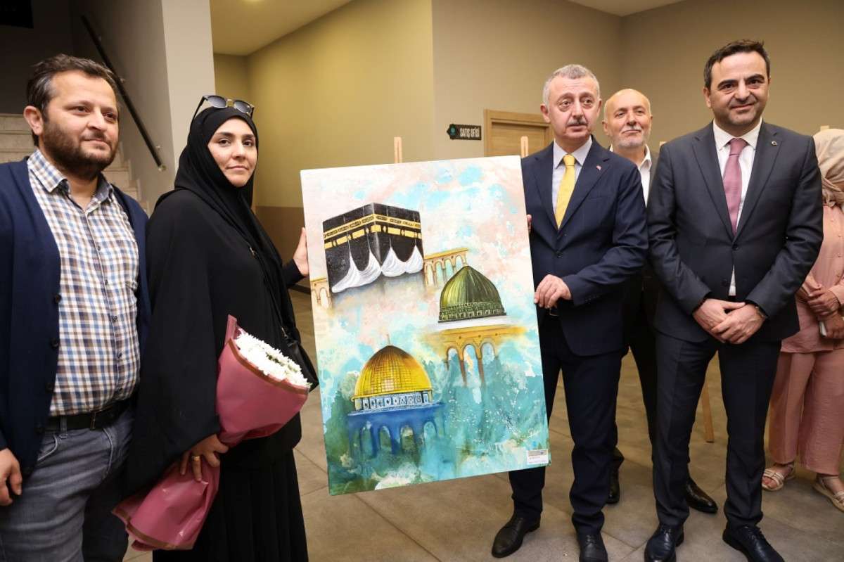 KO-MEK’in Başiskele ilçe sergi açılışına katılan Başkan Büyükakın, kursiyerlerin Filistin ve Kudüs hassasiyetini ortaya koyan ürünleri incelerken duygulandı