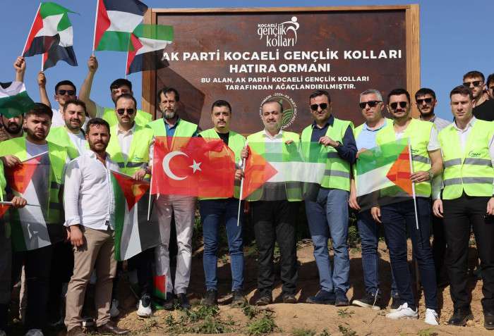 Türkiye’de, 5 Haziran Dünya Çevre Günü kapsamında çok sayıda etkinlik yapıldı. Kocaeli’de, AK Parti Kocaeli İl Gençlik Kolları Başkanı Çağatay Çağlayan önderliğindeki AK Gençler, Türkiye’de bir ilke imza atarak AK Genç Hatıra Ormanı Projesinin açılış ve tabela dikme etkinliğini gerçekleştirdi. Açılışa AK Parti Kocaeli İl Başkanı Şahin Talus, AK Parti Kocaeli Gençlik Kolları Başkanı Çağatay Çağlayan, MKYK üyesi Mehmet Ceran, Geçmiş Dönem İl Gençlik Kolları Başkanı Emre Kahraman, Başiskele Belediye Başkanı Yasin Özlü, 12 ilçe ana kademe başkanları ile gençlik kolları başkanları katıldı. Hatıra Ormanı’nın tabela açılış etkinliği, Umuttepe yerleşkesindeki ormanlık arazide gerçekleştirildi. Gelecek nesillere daha yeşil, daha yaşanabilir bir dünya bırakmak isteyen gençler, yaklaşık olarak 2 bin fidanın bulunduğu arazinin açılışını İsrail’in soykırımına uğrayan Filistinliler’e armağan etti. AK Gençler, dikilen fidanların dibine Filistin bayrağı dikerek Filistin ve Gazzeliler’e desteklerini gösterdi. Fidanları Filistinliler’e armağan eden gençler birlik ve beraberlik mesajı verdi.