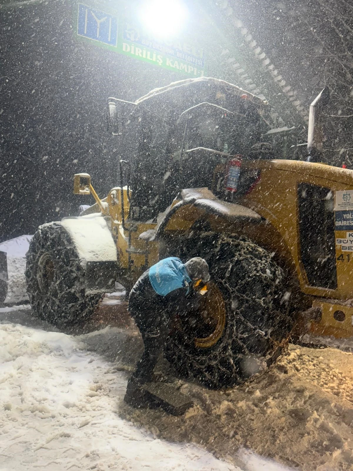 Olumsuz hava şartlarına rağmen gece boyu sahada görev yapan ekipler, soğuk hava ve yağış etkisini yitirene kadar çalışmalarına 7 gün 24 saat esasına göre devam edecek.
