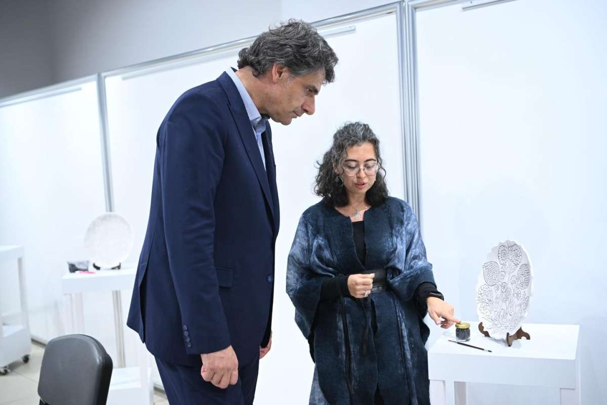 Sergide çini boyama atölye çalışmasına katılan Kartepe Belediye Başkanı Av.M.Mustafa Kocaman, “Her bir çini parçası, sabır ve ustalıkla işlenmiş bir sanat harikasıdır. Geleneksel motiflerin modern yorumlarla buluştuğu bu sergide, hem geçmişin hem de bugünün dokusunu hissedeceksiniz. İlgen İpek Girit’in “Zıtlıkların Uyumu” temalı kişisel çini sergisinde, renklerin ve desenlerin dansına tanıklık etmeye davetlisiniz” açıklamasında bulundu. Çini boyama denemesi de yapan Başkan Kocaman, Sanatçı İlgen İpek’ten el yeteneği konusun da tam not aldı.