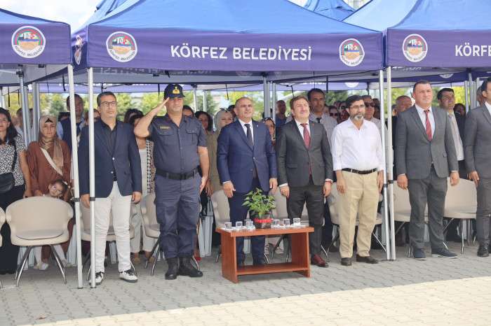Emlak Konut İlkokulu ve Ortaokulu’nda düzenlenen resmi açılış programına; Körfez Belediye Başkanı Şener Söğüt, İlçe Jandarma Komutanı Üsteğmen Hüseyin Eraslan, İlçe Milli Eğitim Müdürü Sergülen Kurt, İlçe Müftüsü Muhammed Aydın, öğretmenler, öğrenciler ve veliler katıldı.