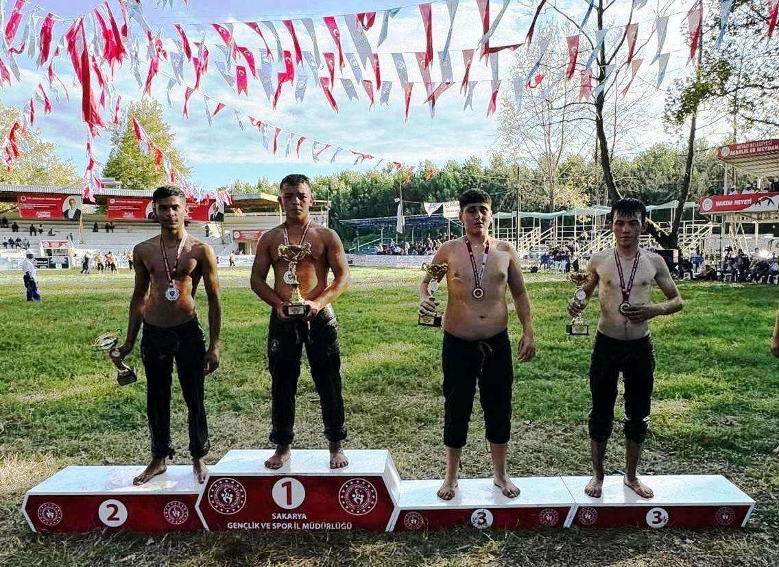 KÖRFEZLİ YAĞLI GÜREŞÇİLER AKYAZI’DA MADALYA KÜRSÜSÜNDE