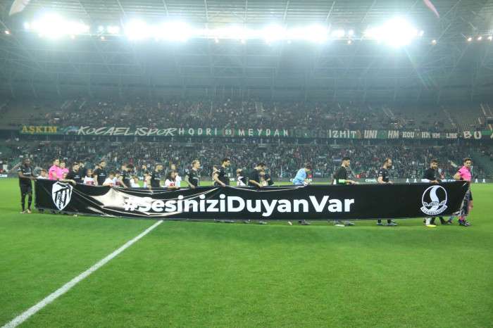 Öte yandan depremden etkilenen illerin plaka kodlarının denk geldiği dakikalarda kent ismi anons edildi. Bütün tribün anonslara “Burada” diyerek karşılık verdi. 14 bin Kocaelispor, 3 bin 500 Sakaryaspor olmak üzere toplam 17 bin 500 bilet satıldı. Müsabaka öncesinde iki takımın taraftar grupları olan Hodri Meydan ve Tatangalar birbirlerini alkışlarken, sahaya çıkan her iki takımın futbolcuları da beraber tribüne çağrıldı. İki takım yöneticileri maçtan önce dostluk mesajları verirken, Kocaelispor Başkanı Engin Koyun ile Sakaryaspor Başkanı Cumhur Genç birbirlerine hediye takdim etti. Afet bölgesinden Kocaeli’ye gelen depremzede çocuklar da maçı takip ederken bir kısmı futbolcularla beraber maç önü seremonisine çıktı. Maçın son 10 dakikası ise iki takım tribünleri arasında yaşanan gerginlikle geçti.