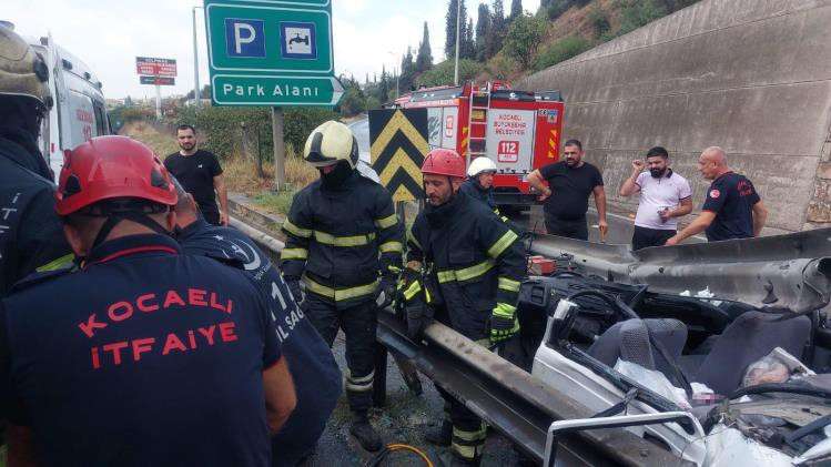 Kocaeli'de otomobil bariyerlere ok gibi saplandı. Kazada bir kişi hayatını kaybetti, iki kişi yaralandı.