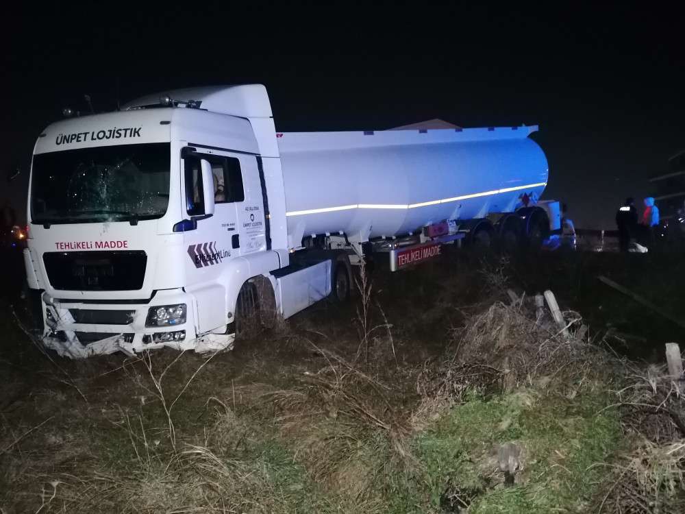 PARK HALİNDEYKEN FRENİ BOŞALAN TANKER YOLDAN ÇIKTI