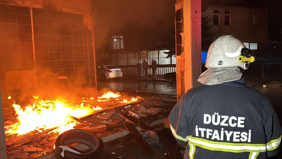 Yangın, Aziziye Mahallesi, eski kapalı pazar yerinde meydana geldi. Alınan bilgilere göre yeni açılan pazar yerine taşınan bir dükkanda belirlenemeyen bir sebeple yangın çıktı. Alevleri gören çevredeki vatandaşlar durumu Düzce Belediyesi itfaiye müdürlüğü ekiplerine bildirdi. Kısa süre içerisinde bölgeye gelen Düzce Belediyesi itfaiye müdürlüğü ekipleri alev alev yanan dükkandaki yangını kısa süre içerisinde söndürerek kontrol altına aldı. Yangın maddi hasar ile atlatıldı.