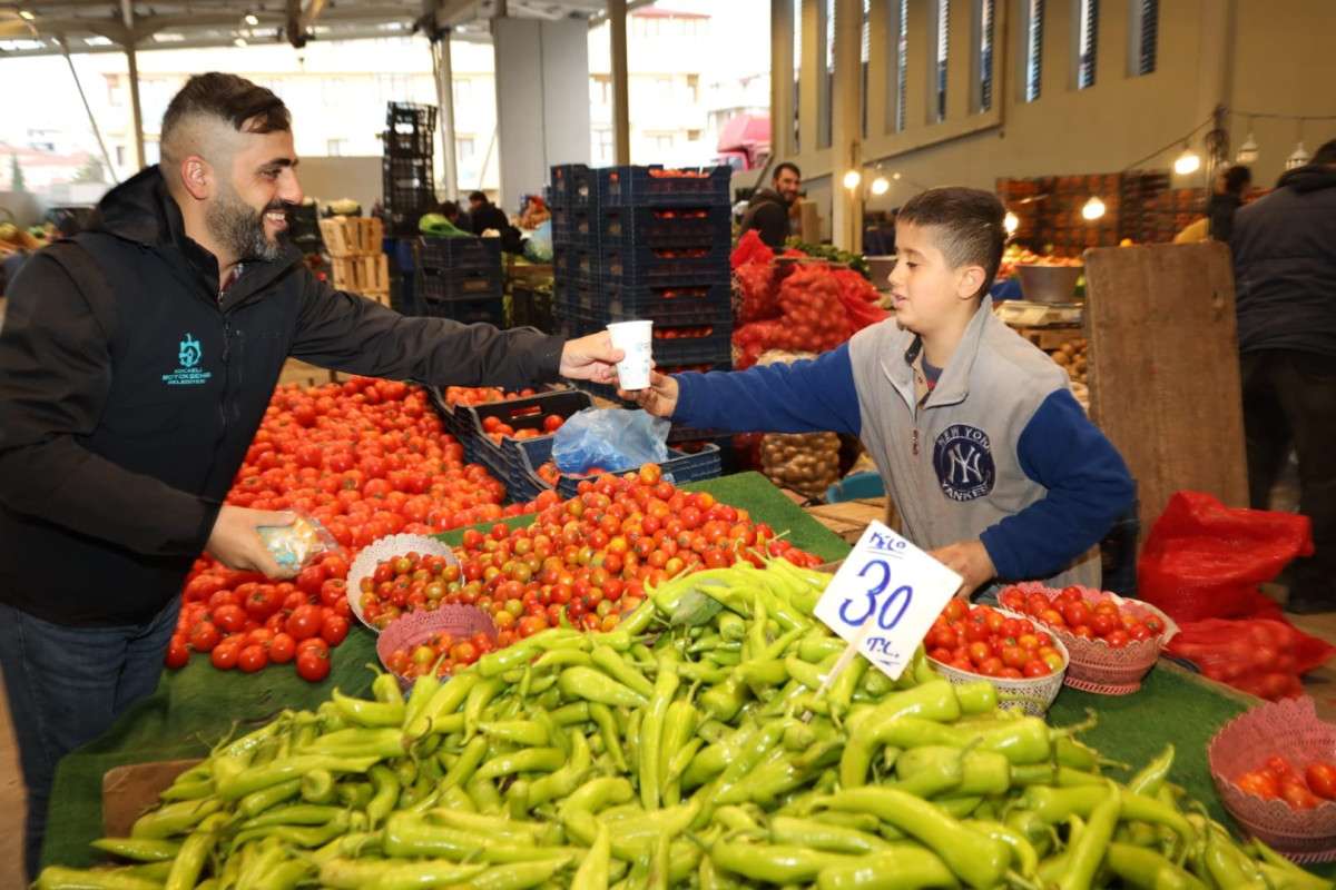 Kocaeli Büyükşehir Belediyesi, sabah erken saatlerde tezgah kuran pazarcı esnafına çorba ikramında bulunmaya devam ediyor
