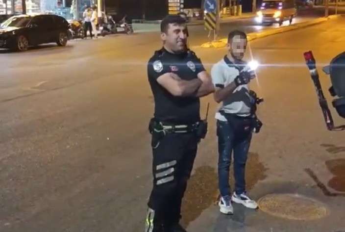 Kocaeli'nin Darıca ilçesinde trafik polisi, gürültülü egzoz sebebiyle durdurulan ve kendilerine tepki gösteren motosikletin sürücüsüne egzoz sesini dinletti.