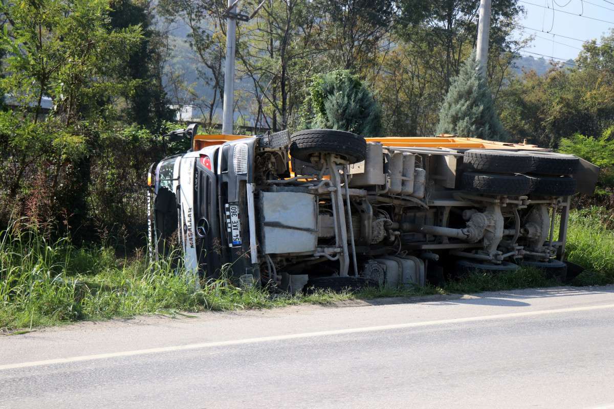 Sakarya'nın Arifiye ilçesinde sürücüsünün kontrolünden çıkan toprak yüklü kamyonun yol kenarına devrilmesi neticesinde meydana gelen trafik kazasında 1 kişi yaralandı.