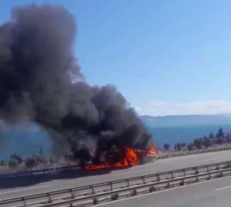 Yangının nasıl başladığını anlatan İbrahim Kader, "Seyir halindeyken sağ arka 2 lastiğim patladı. Aracı cebe çektim sonrasında lastik alev almaya başladı. Yangın söndürme tüpü ile müdahale ettim ama söndüremedim alevler büyüdü. İtfaiye gelip yangını söndürdü. İstanbul’dan gelip İzmit’e gidiyordum" dedi.