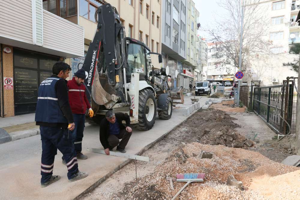 Derince Belediyesi Fen İşleri Müdürlüğü ekipleri Sırrıpaşa Mahallesi Lale Sokak'ta üstyapı düzenlemeleri gerçekleştiriyor