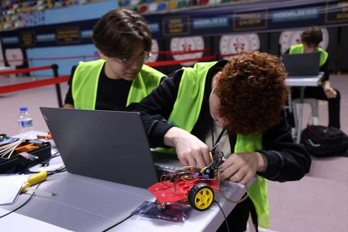 KODELİG’23 yarışmaları kapsamında 1. gün yapılan “Tasarla Çalıştır” kategorisinde finale kalan öğrenciler Şehit Polis Recep Topaloğlu Spor Salonu’nda gerçekleştirilen robot tasarlama yarışmasında ter döktü. Kendi tasarladıkları robotları yapmak için yarışan katılımcılar verilen sürede görevi tamamlamak için ekip halinde çalıştı. Gün sonunda yazılımı ve tasarımı kendilerine ait olan robotlar hazırlayan katılımcılar hazırlanan parkurda 25 Ekim Çarşamba günü yarışmak için beklemeye başladı.