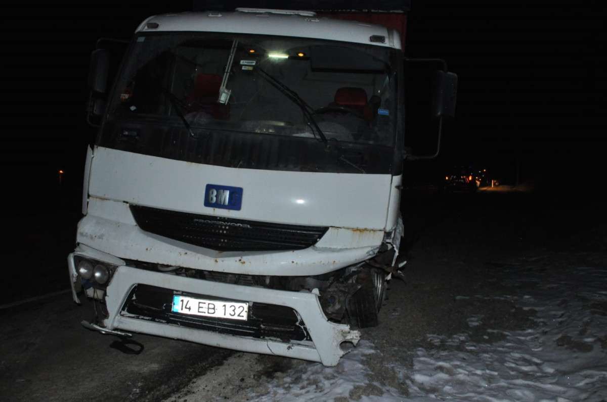 Kaza, saat 04.00 sıralarında Bolu-Mudurnu Karayolu'nda meydana geldi. Edinilen bilgiye göre, Mustafa T. idaresindeki 14 LA 465 plakalı Fiat marka otomobil, karşı yönden gelen Murat B. hakimiyetindeki canlı tavuk yüklü 14 EB 132 plakalı BMC marka kamyon ile çarpıştı. Çarpışmanın şiddetiyle Mustafa T. ile otomobildeki yolcu Halil İbrahim T. yaralandı. 112 Acil Çağrı Merkezi'ne yapılan ihbar üzerine olay yerine itfaiye, sağlık ve jandarma ekipleri sevk edildi. Yaralılar, ilk müdahalesinin ardından Bolu Abant İzzet Baysal Üniversitesi Tıp Fakültesi Hastanesi'ne kaldırıldı.