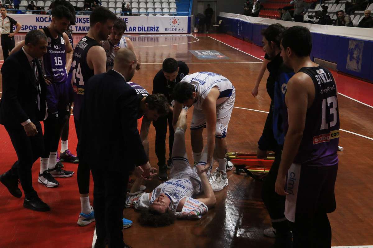 Kocaeli BŞB Kağıtspor oyuncusu Barboros Bozkurt, son çeyrekte yaptığı atış sırasında bileği çıktı.